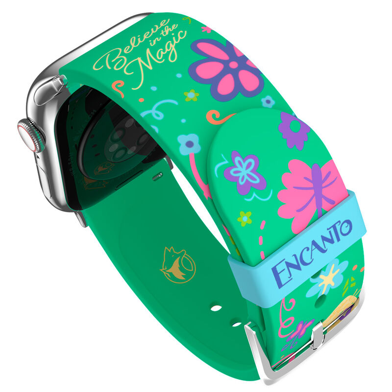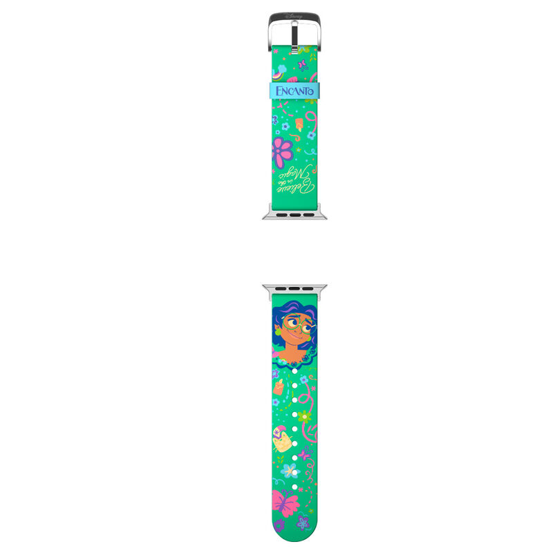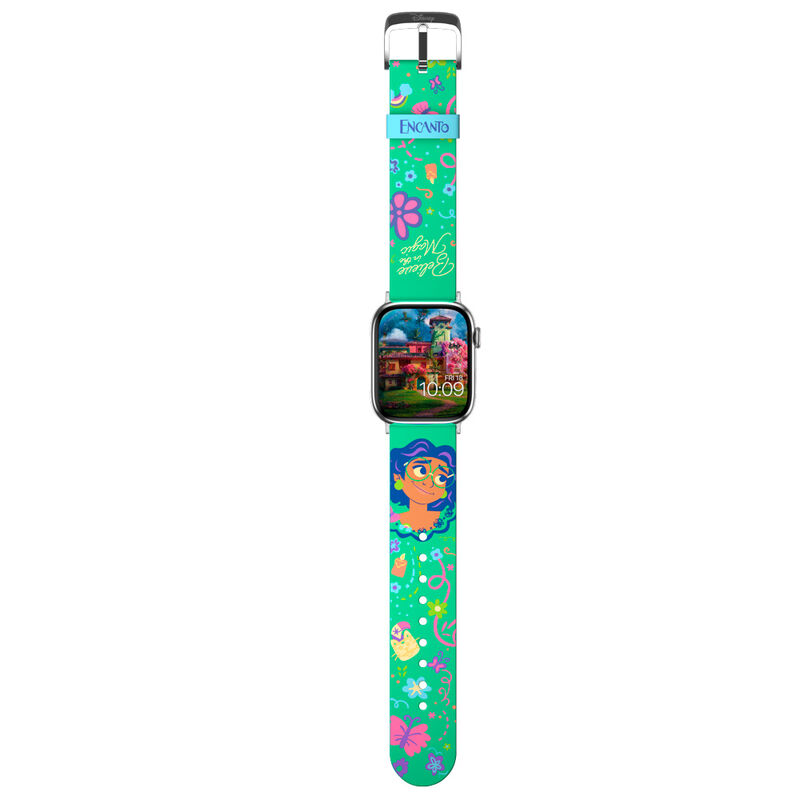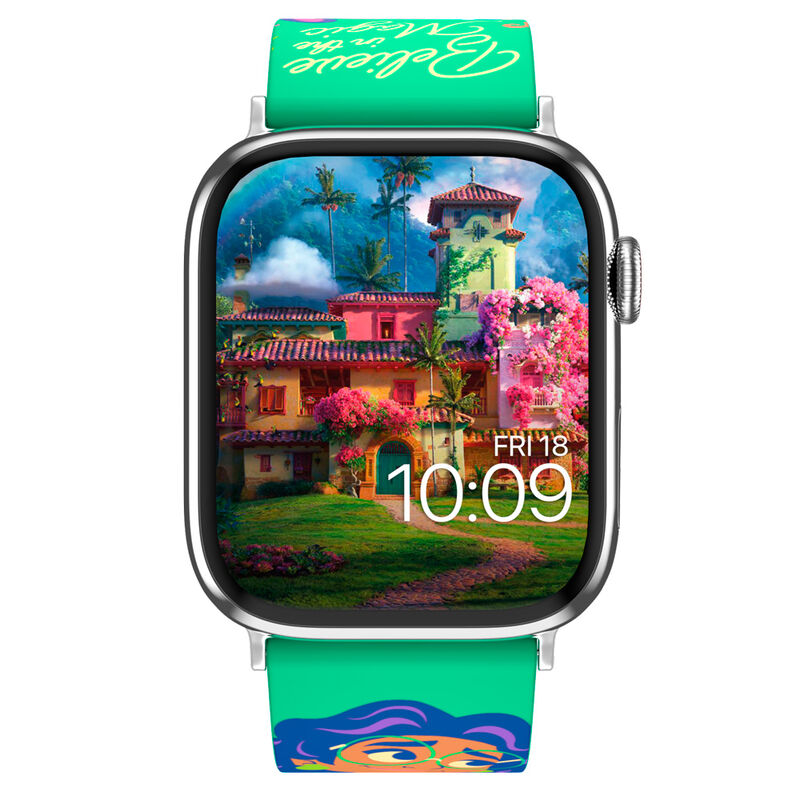 Correa para Smartwatch con licencia oficial. Correa inspirada en Mirabel. Incluye más de 20 diseños exclusivos de esferas digitales. Fabricado en silicona impresa de alta calidad con acero inoxidable. Resistente al sudor, a los desgarros y a los rayos UV. Correas compatibles con todas las versiones de Apple Watch. Incluye un pasador de reloj estándar de 22mm con mecanismo de fácil extracción para quitárselo rápidamente. La correa se ajusta a muñecas de entre 13 y 22cm, por lo que se adapta a la mayoría de tamaños de muñeca. Apple Watch no incluido. Las correas son compatibles con todos los modelos actuales de Apple Watch (Series 1, 2, 3, 4, 5, 6, 7, 8, SE y Ultra). Viene con 2 juegos de lenguetas de conexión para funcionar con Apple Watch grandes y pequeños (38/40 mm y 42/44 mm) nada más sacarlo de la caja, y con cualquier smartwatch basado en Android con una clavija de 22 mm. Cada correa incluye acceso a contenido digital para su Apple Watch, lo que lleva su experiencia con este dispositivo a un nivel completamente nuevo. Sólo tiene que descargar nuestra MobyFace App (actualmente exclusiva para iOS) y, a continuación, escanear el código QR incluido en la caja.