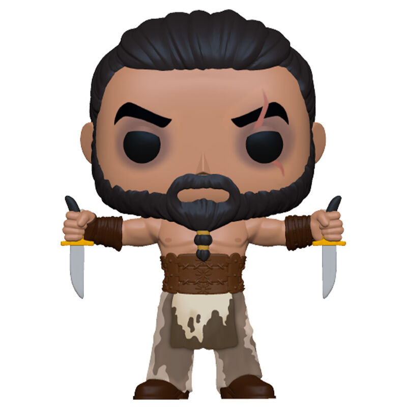 La figura POP de Game of Thrones de Khal Drogo con dagas es un impresionante collectible que captura la esencia del conocido personaje de la serie. Esta figura presenta a Khal Drogo, interpretado por Jason Momoa, en su característico atuendo de guerrero dothraki, con detalles meticulosamente elaborados que reflejan su poderosa presencia.