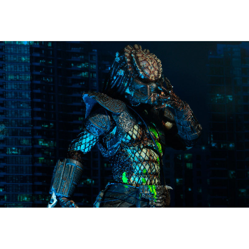 La Figura Ultimate Battle-Damaged City Hunter Predator 2 es una impresionante representación del icónico cazador de la película “Predator 2”. Con una altura de 20 cm, esta figura captura la esencia del personaje con un alto nivel de detalle y articulación.