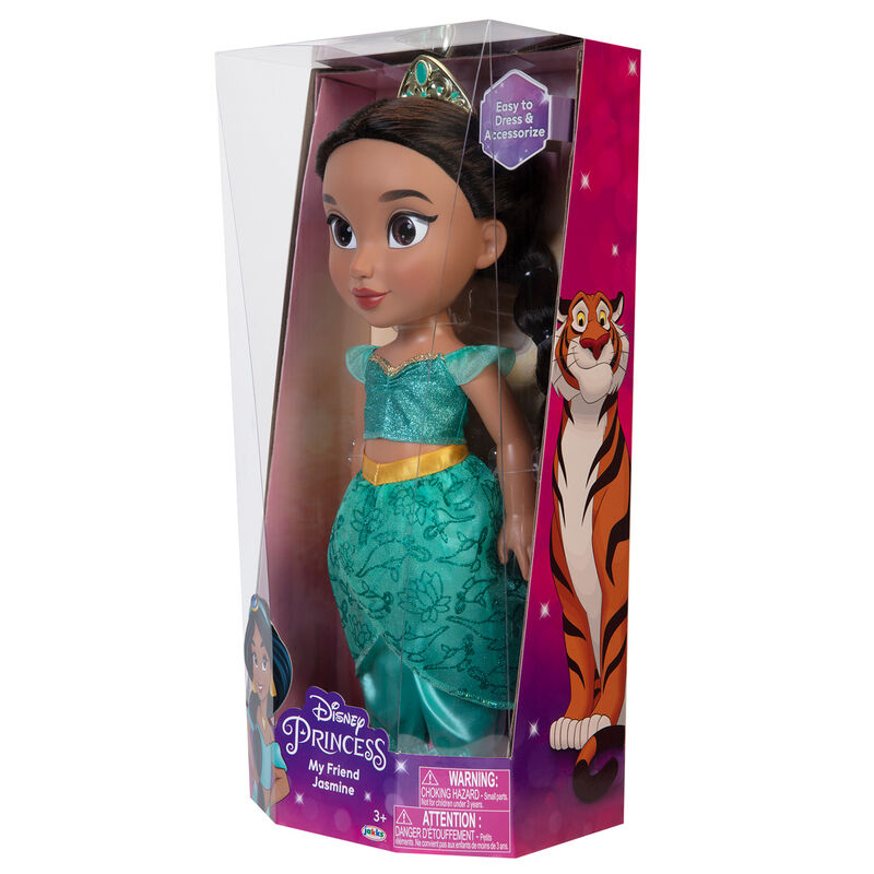 La muñeca Jasmine es perfecta para los amantes de Disney y los coleccionistas. Su cabello largo y oscuro está cuidadosamente peinado, añadiendo un toque de realismo a la figura. Además, sus ojos expresivos y su delicada expresión facial hacen que sea un regalo ideal tanto para niños como para adultos.