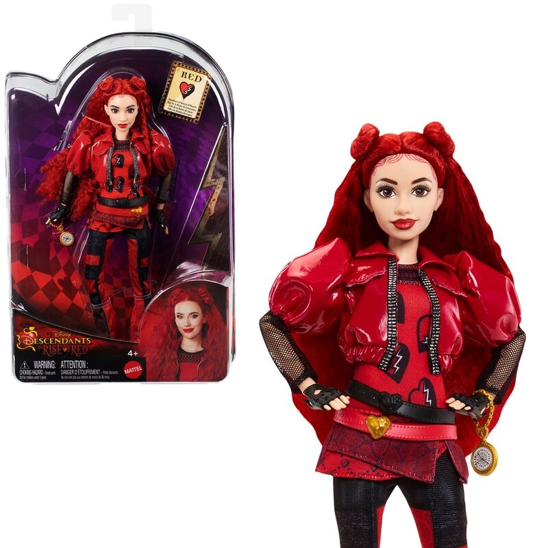 Edad: +4 años. Desata tu rebeldía con Red, hija de la Reina de Corazones, de la película de Disney Descendants 4: The Rise of Red. Con su pelo de color rojo intenso y su emblemático conjunto, esta muñeca de Red se parece a su personaje de la película. Tiene articulados los brazos, los codos, las muñecas y las rodillas, y está lista para aventuras llenas de acción mientras viaja en el tiempo con su accesorio de reloj de bolsillo incluido. Es un gran regalo para los fans, que querrán coleccionarlos todos. Se venden por separado y están sujetas a disponibilidad. Los muñecos no pueden tenerse en pie por sí solos. Los colores y la decoración pueden variar.