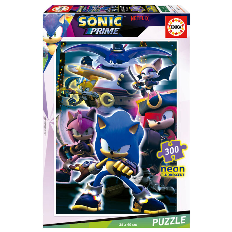 Descubre el Puzzle Neon Sonic Prime, un emocionante rompecabezas de 300 piezas que ofrece horas de diversión y entretenimiento. Este puzzle presenta un vibrante diseño de Sonic, el famoso erizo azul, en una emocionante escena llena de acción y color.