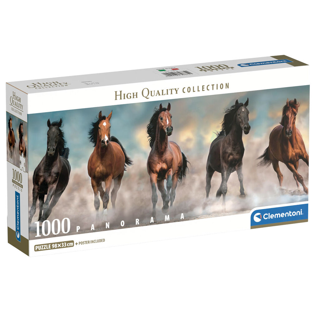 Descubre el emocionante Puzzle panorama Horses de 1000 piezas, diseñado especialmente para los amantes de los caballos y los rompecabezas. Este puzzle ofrece una experiencia única al combinar arte y desafío en un formato panorámico.